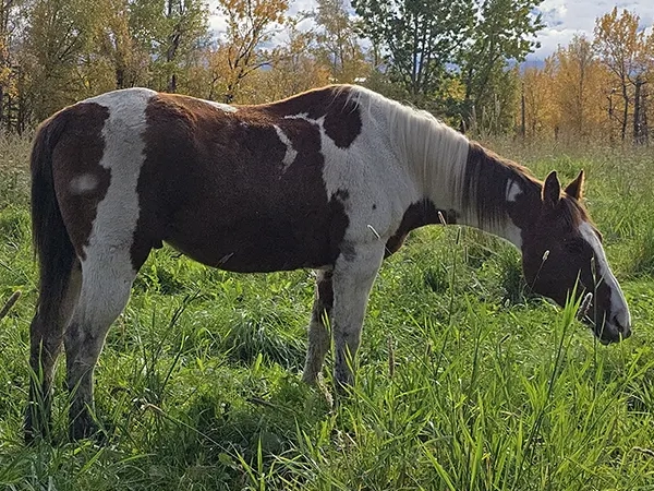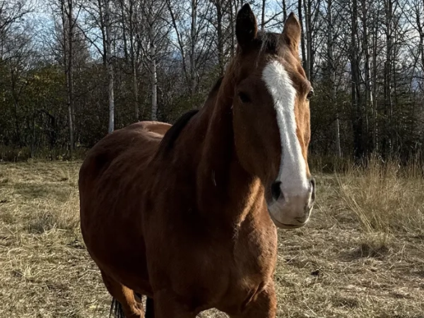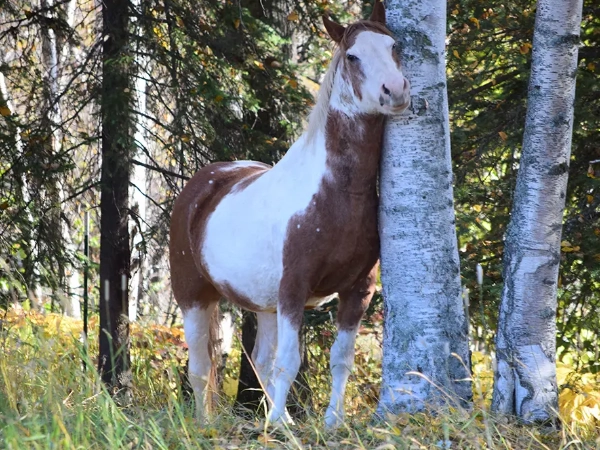 Keystone (Bandido/Bandi) was born in Montana in 2004. He arrived in Alaska at 6 years of age, settling into the herd at Victory Bible Camp in Glacierview, Alaska. He spent 10 years as a trail horse, providing countless hours of trail riding experiences to many riders. He is a very smart horse! He taught beginning riders “the ropes” and knows how to be a “pack horse”, carrying gear for people on trail trips.