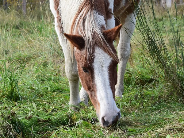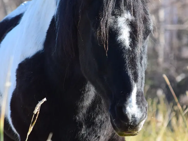 Diamond is a black and white paint and stands 13.3 hands tall. He is delightful and has a quiet personality. He is independent but if friendly and approachable. He is happy grazing on his own or with the herd. We think the key there is he is just happy grazing. He joined STRIDE October 2025.