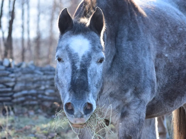 Ruger is an appaloosa gelding who came back to his home in the Valley in 2013 from the Kenai Peninsula. He is 15.2 hands. In 2008 he had an injury to his left hind hoof which needed casting and attention until it grew back out. His hoof totally regrew! He is a very kind, patient horse with an amazing personality and incredible resilience. Over the years he has developed summertime allergies which require a monthly shot and lots of curry time and generous helpings of Coat Defense. He has also been diagnosed as legally blind, though he gets around quite well, often with gentle assistance from his herd mates. Born in 2000, he is one of the sweetest, most accommodating horses in the herd and always good for a grooming!